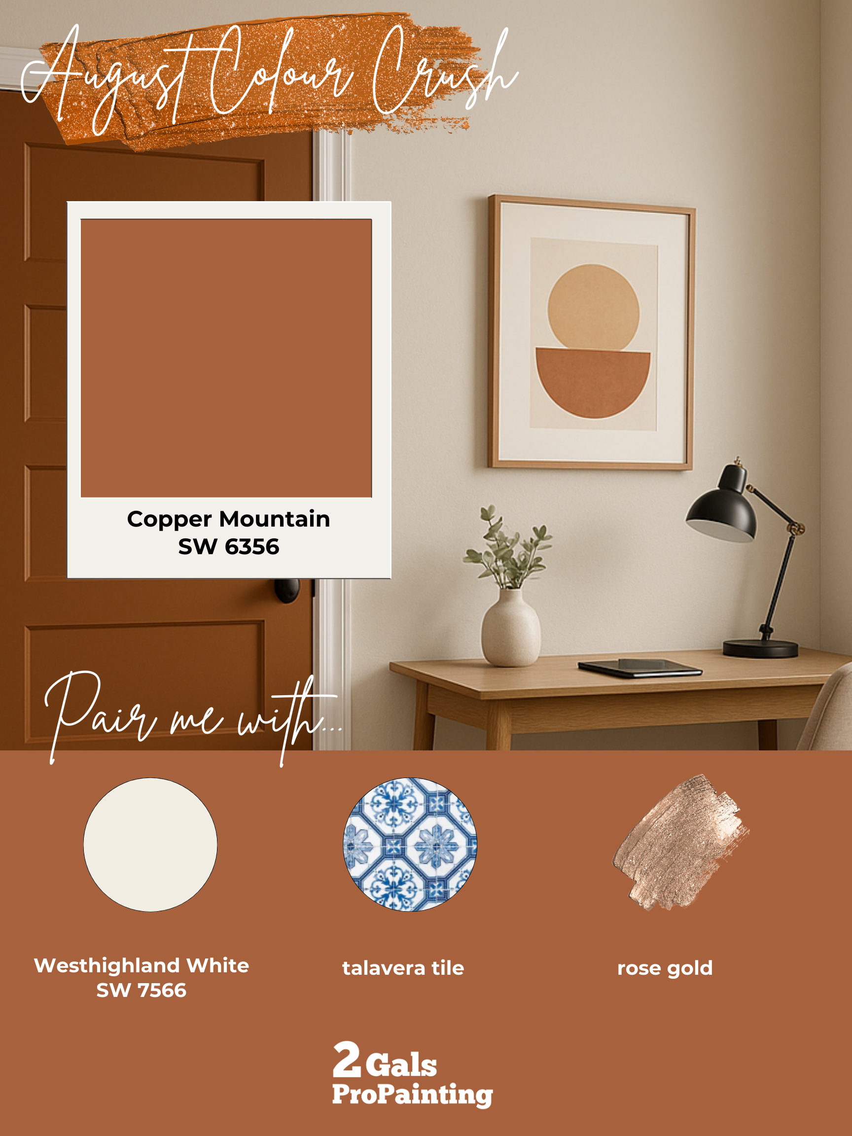 August Colour Crush ❤️ This month, we’re loving Copper Mountain by Sherwin Williams — a warm, earthy shade that brings depth and richness to any space. Perfect for creating cozy yet modern interiors, it’s a versatile colour that feels timeless and bold all at once. Pair it with West Highland White by SW for a clean contrast, add a touch of rose gold for subtle elegance, and finish the look with Talavera tiles to bring in texture and charm. Whether you’re refreshing an accent wall, updating cabinetry, or layering in décor, Copper Mountain is a statement-maker for August 🌄 Our SAVE the TAX Promo is running until August 25th - now’s the perfect time to update your space 😍 Click the link in our bio for a Free Consultation & let’s find a place in your home for Copper Mountain 📲